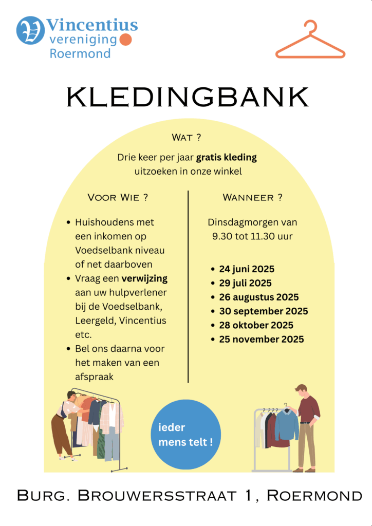 Vincentius Kledingbank gaat in juni van start 2025-05-12 door Willibrord van den Besselaar Inmiddels zijn de plannen voor deze nieuwe activiteit vergevorderd.